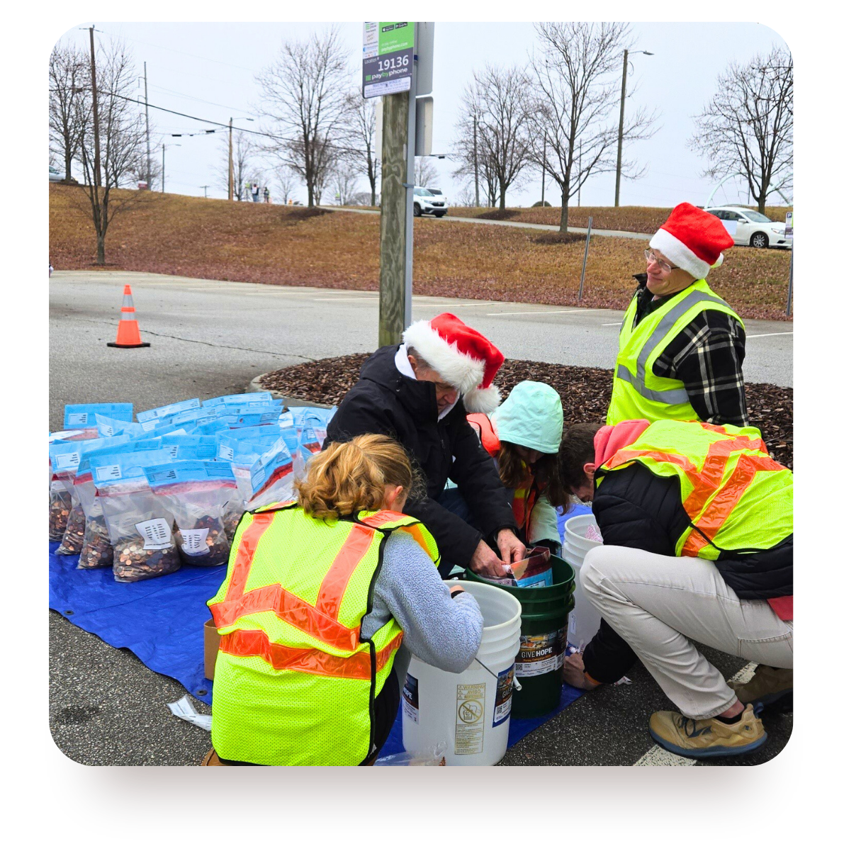 - Collect coins, dollars, and checks to drop off on Collection Day (first Saturday of December).